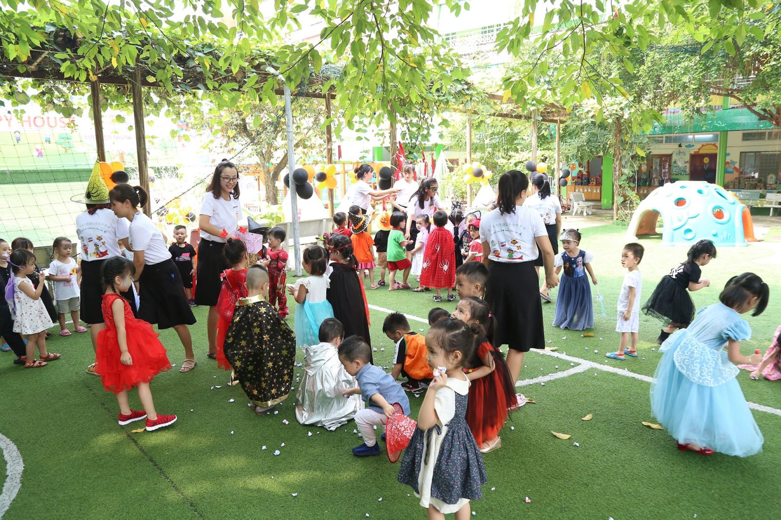 Trong không khí lễ hội cuối tháng 10, sáng ngày 31.10, các bé trường Happy House 2 đã cùng nhau hóa thân thành các nhân vật như siêu anh hùng, công chúa, phù thủy, cướp biển… thật xinh xắn, đáng yêu và mạnh mẽ.