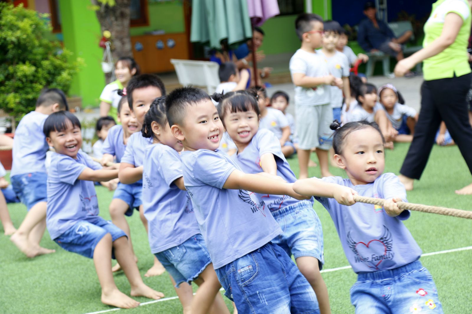Đến với Hội thao, các bé tham gia nhiều trò chơi vui nhộn, hấp dẫn và kích thích tinh thần thể thao trong từng trò chơi như: đá banh, bóng rỗ, chèo thuyền, trò chơi liên hoàn, kéo co,… Không những vậy, những giờ hoạt động như thế này còn giúp bé: