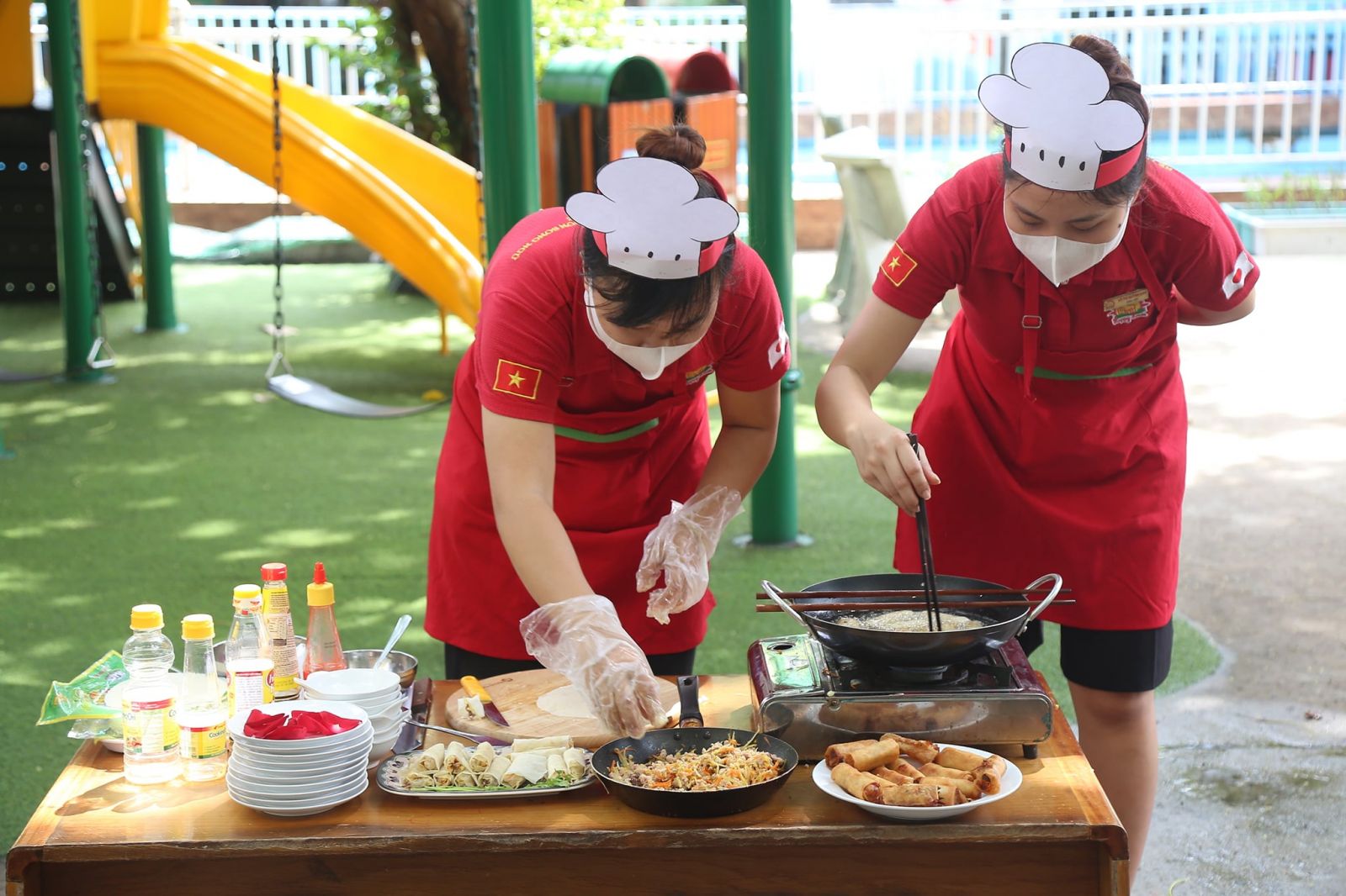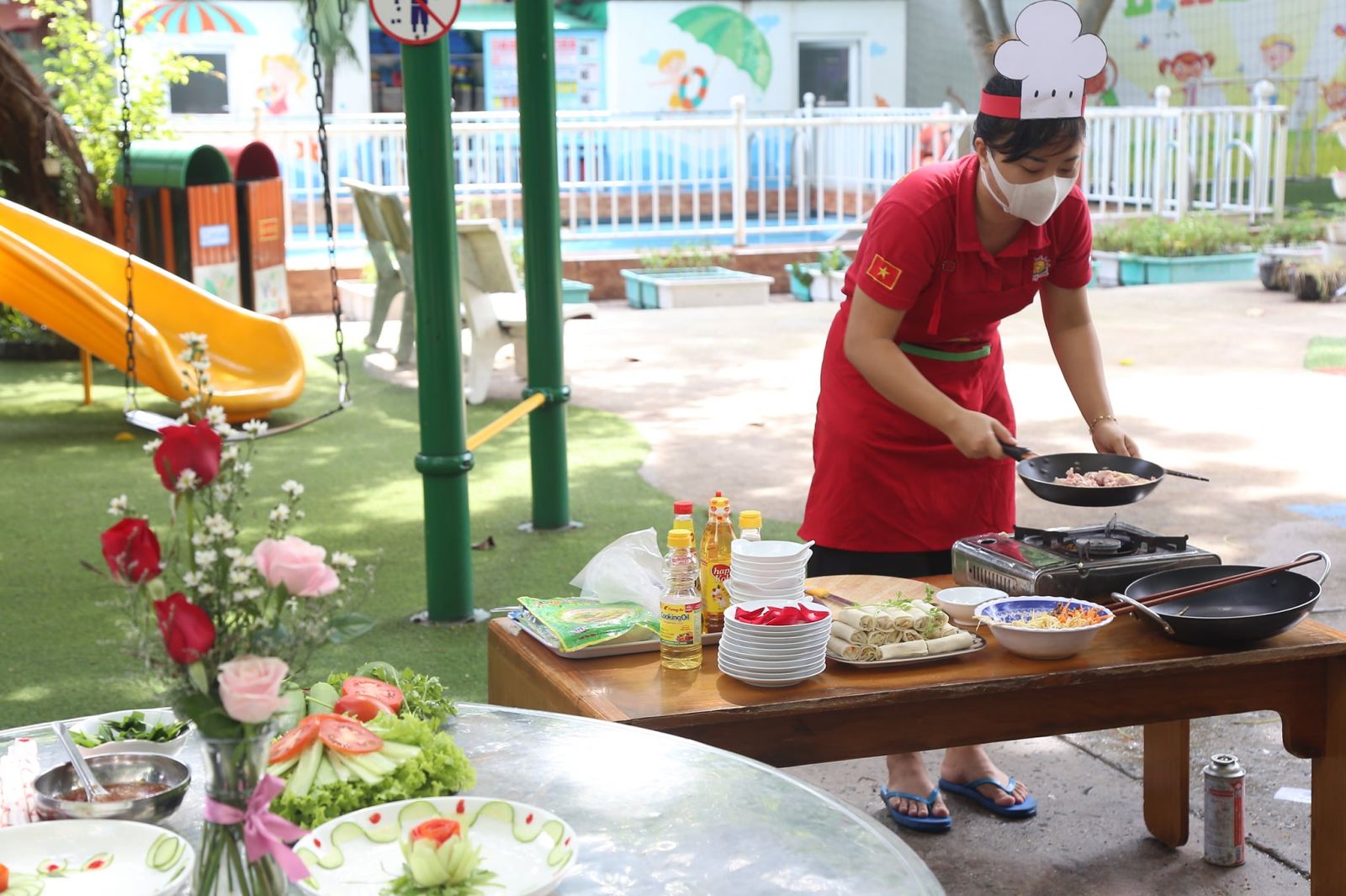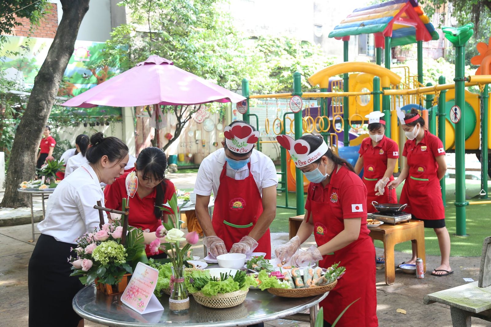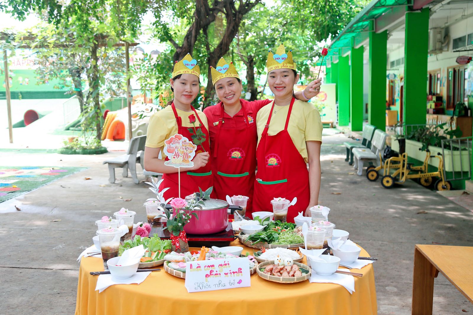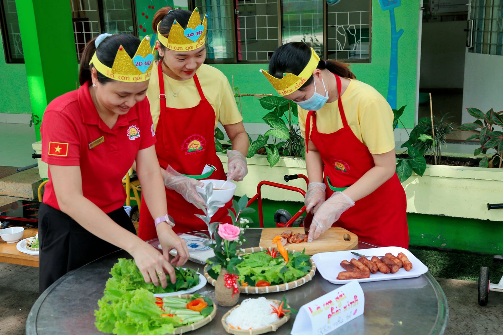 Món ăn Việt Nam thật phong phú và đa dạng, sự hài hòa của đất trời, thiên nhiên, sự cân bằng giữa các loại gia vị…không chỉ mang đến những món ăn ngon, đẹp, mà ẩn trong từng món ăn còn là những thông điệp sâu sắc, ý nghĩa Trong không khí ấm áp của ngày lễ kỷ niệm 20-10 ngày tôn vinh những người Phụ Nữ Việt Nam, tập thể cán bộ, giáo viên trường Happy House 2 đã cùng nhau tham gia hội thi nấu ăn Cùng nhau vào bếp – Sắc màu yêu thương. Mỗi món ăn mang đến những sắc màu và hương vị riêng mà còn là những tình cảm của chính những người đầu bếp đã dành hết tâm huyết của mình vào đó, để người ăn không chỉ thưởng thức món ăn ngon mà còn là niềm hạnh phúc. Món ăn Việt Nam không chỉ đẹp mắt bên ngoài, đậm đà khẩu vị bên trong mà còn chứa đầy những tình cảm nồng ấm từ bàn tay người đầu bếp. Những thông điệp yêu thương qua những món ăn, cách bày trí đều được thuyết trình ý nghĩa, như những lời tri ân đến những người phụ nữ thân thương trong mỗi gia đình, Thông qua những món ăn, thông điệp dành cho mọi người là hãy luôn xinh đẹp, hạnh phúc và thành công hơn nữa, với chúng ta, ngày nào cũng là ngày 20-10, cũng là ngày hạnh phúc.