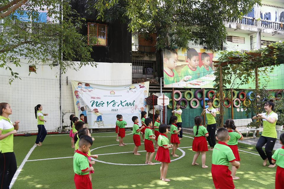 Thấu hiểu được tầm quan trọng cho giai đoạn phát triển của trẻ nhỏ từ giai đoạn 2 – 5 tuổi, trường Mầm non HappyHouse luôn chú trọng đầu tư về cơ sở vật chất, sân chơi rộng, thoáng mát để trẻ được phát triển trong môi trường an toàn và lành mạnh nhất. Ngoài ra, các cô giáo ở trường cũng luôn theo dõi sát tâm lý của trẻ, để bố trí, tổ chức hoạt động sao cho hiệu quả và phù hợp với điều kiện thực tế của trường. Cụ thể, trường Mầm non HappyHouse, các hoạt động ngoài trời được tổ chức một cách phong phú, đa dạng. Cho các bé chơi cầu trượt, xích đu, quan sát cây, động vật, hóa thân vào các câu chuyện cổ thích và tham gia các trò chơi dân gian… Từ đó, hình thành cho bé nhiều thói quen tốt như: Xếp hàng khi chơi, biết giúp đỡ nhau khi tham gia các hoạt động nhóm, hình thành thói quen tự lập…
