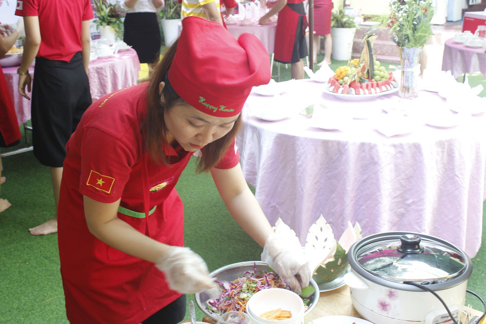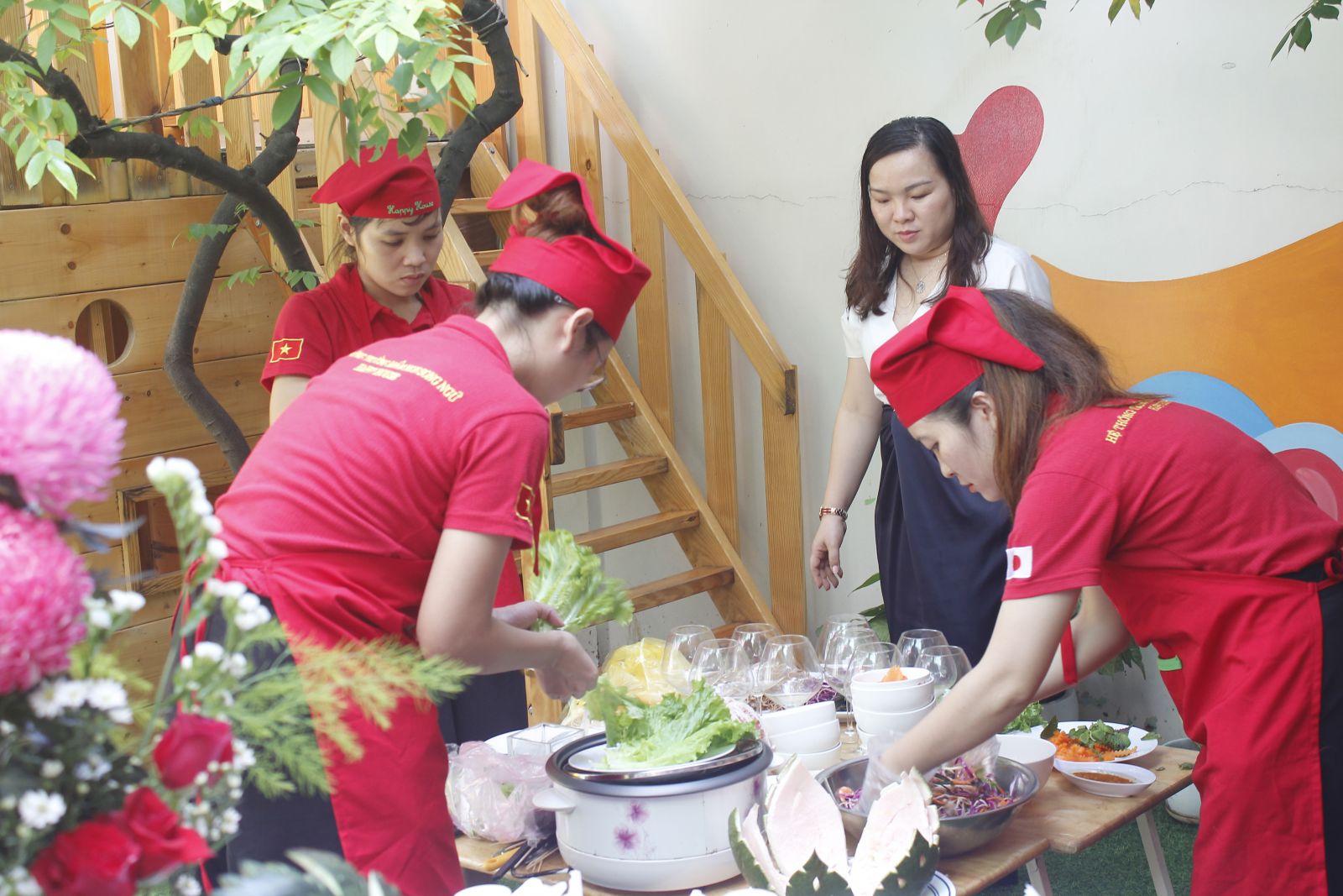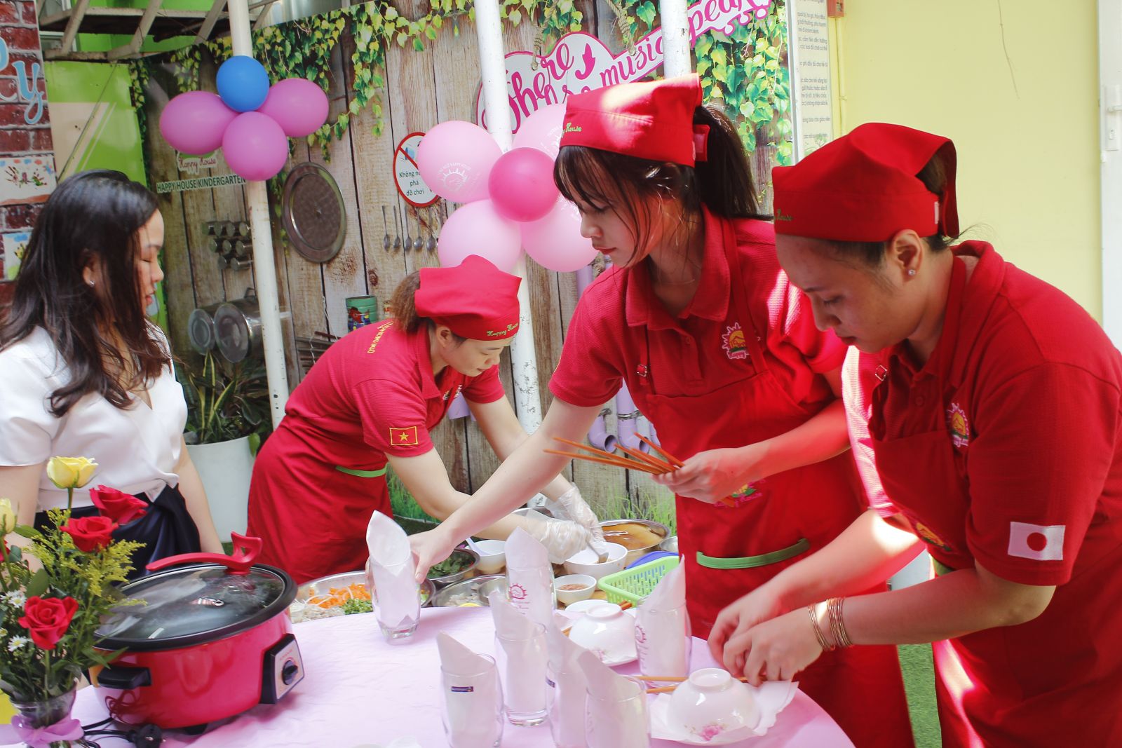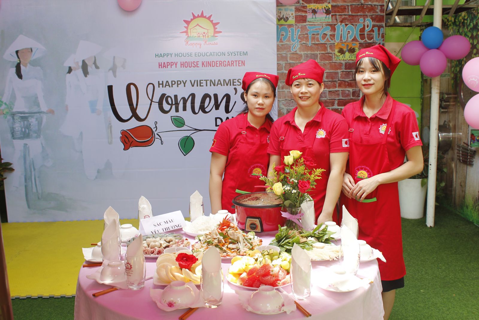 Ngày 20/10, trường Mầm non Happy House CS Vườn Lài tổ chức Hội thi nấu ăn với chủ đề “Ấm áp yêu thương” để chào mừng ngày Phụ nữ Việt Nam. Hội thi được diễn ra trong không khí vui nhộn, ấm áp tình yêu thương của các thành viên trong trường. Sau 30 phút trổ tài, các đội đã thể hiện sự khéo léo, sáng tạo thông qua cách trình bày vô cùng sinh động và đẹp mắt. Các món ăn không những vừa đa dạng, vừa đẹp về thẩm mỹ, ngon về chất lượng mà còn đảm bảo vệ sinh an toàn thực phẩm. Bên cạnh đó, các đội thi còn có phần thuyết trình thật ý nghĩa. Và thông qua hoạt động này đã giúp cho tất cả các thành viên trong trường có cơ hội giao lưu, gắn bó và hiểu nhau hơn.