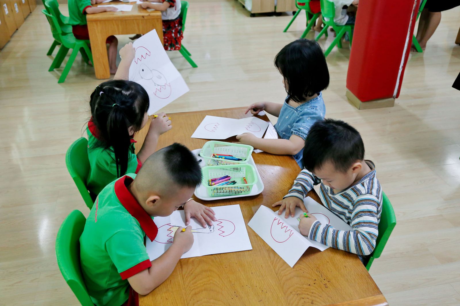 Hôm nay, các bạn được cô tạo sẵn cho một quả trứng, việc của các bạn là vẽ thêm con vật được sinh ra từ quả trứng của mình, có bạn thì thích khủng long, có bạn thì thích gà con, rắn con hay cả ngỗng con nữa, tất cả sự sáng tạo và sở thích của bé đều được tự do thể hiện qua những nét vẽ và màu sắc của mình.