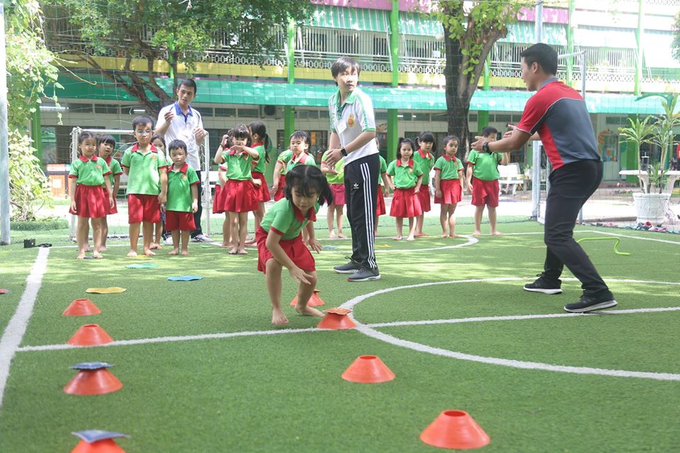 Những giờ học Go Kids luôn tràn đầy năng lượng với các trò chơi vận động, bé được chơi mà học, học mà chơi, thông qua các hoạt động vận động liên hoàn, giúp tăng cường khả năng phản xạ, rèn luyện sức khỏe cho các bé.