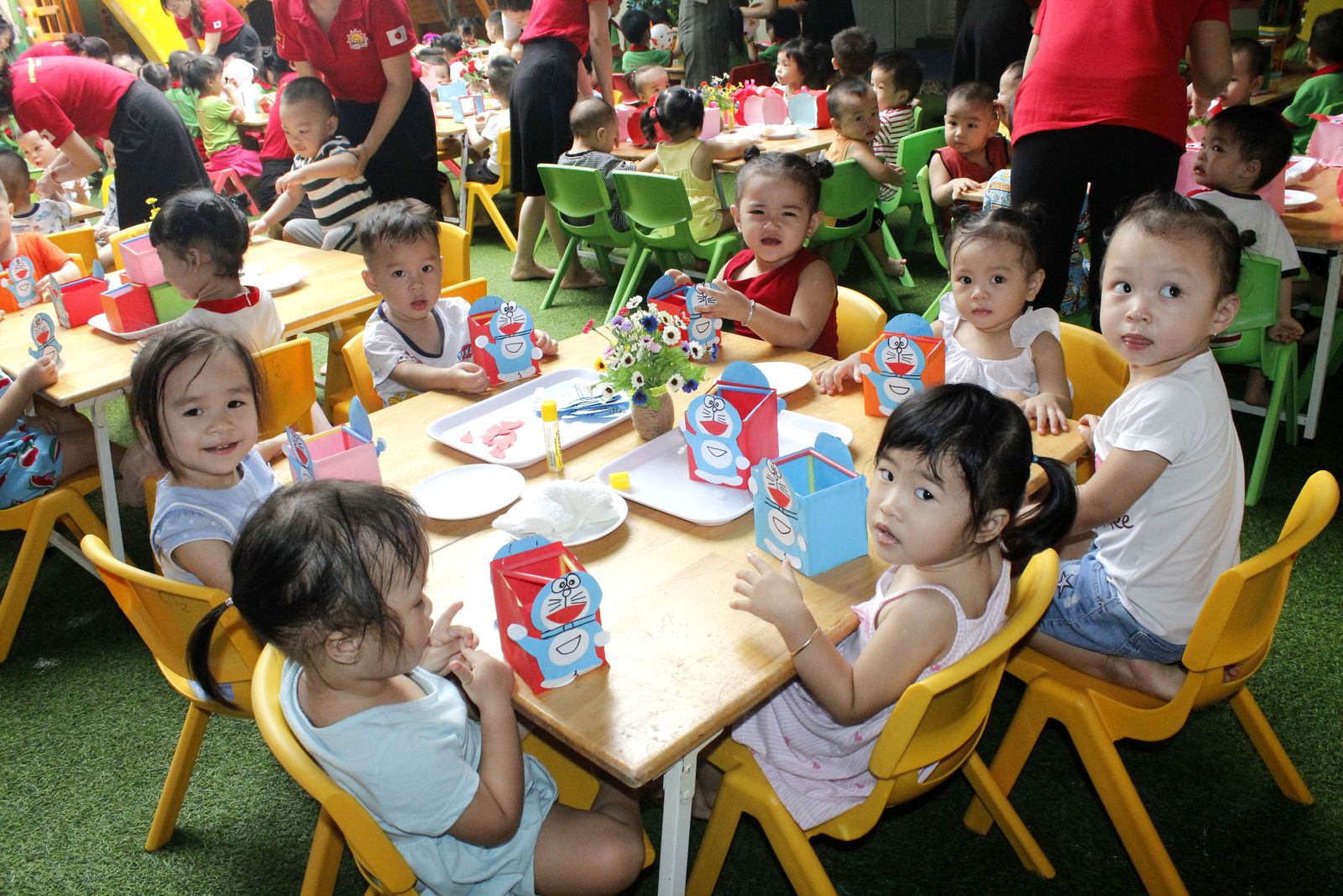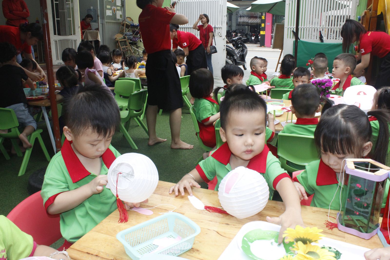 Trước tiên, để chuẩn bị cho lễ rước đèn trung thu sắp tới, cô và bé trường Mầm non Happy House – cơ sở Vườn Lài đã cùng nhau chuẩn bị, trổ tài sáng tạo, tự tay làm những chiếc đèn lồng vô cùng xinh xắn và đẹp mắt. Ba mẹ có thấy tự hào về con chưa nè?