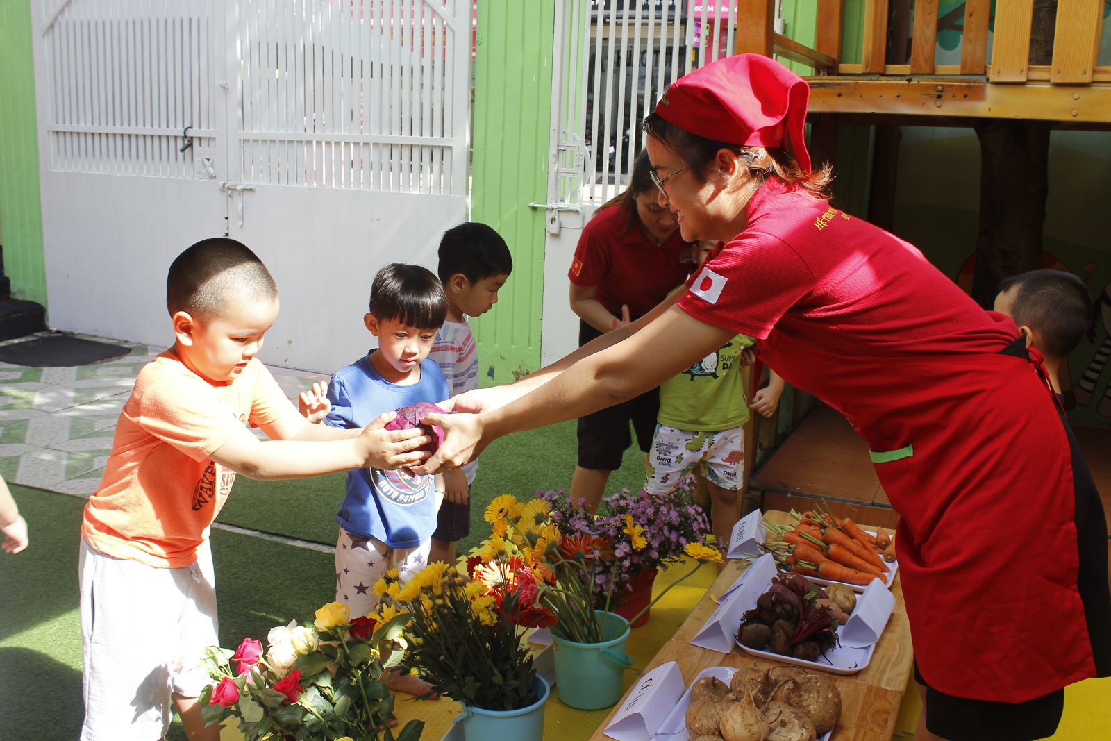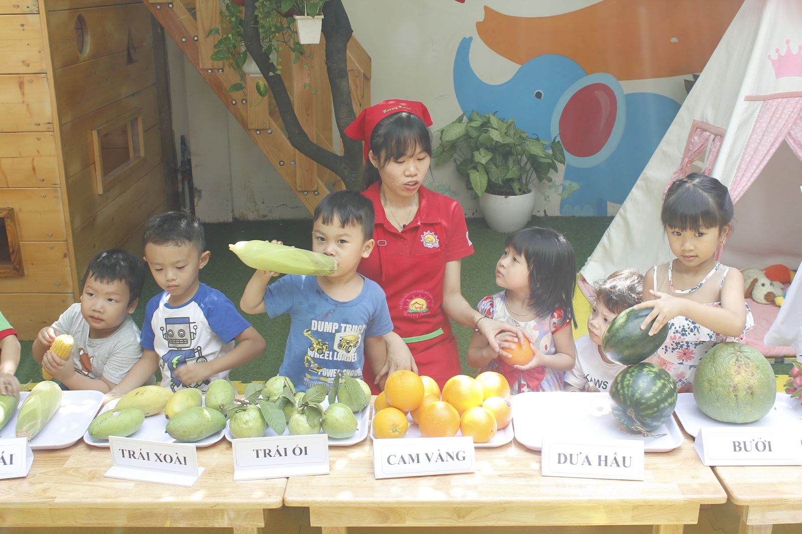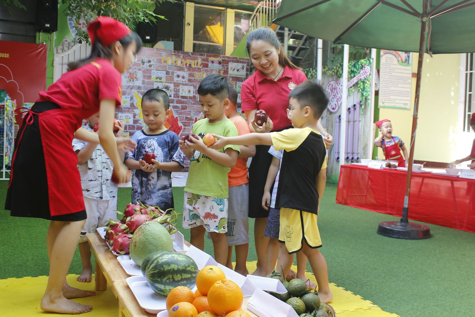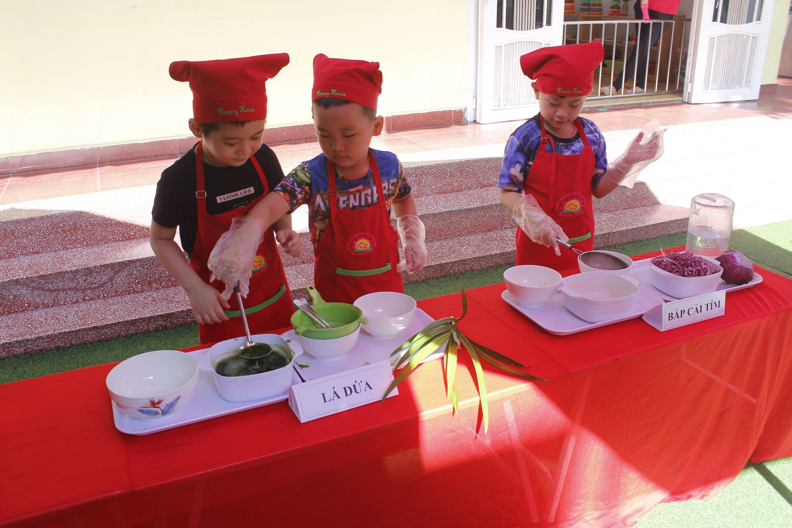 Sáng nay, trường Happy House như những “chiếc áo sắc màu” thật rực rỡ và đẹp mắt, tại sân trường rộn ràng bởi những tiếng cười đùa nói chuyện rôm rã. Nằm trong dự án “Colorful world - Thế giới sắc màu”, các con trải qua một buổi hoạt động vô cùng thú vị khi cùng cô và các bạn tìm hiểu, khám phá về những màu sắc và công dụng của các loại hoa và rau củ quả. Các con lần lượt tham gia tất cả hoạt động như hỏi vui đáp vui về rau củ quả, dùng rau củ quả tạo nên những bức tranh sinh đông hay dùng các loại thực phẩm quen thuộc để tạo ra những màu sắc thật đẹp,...
