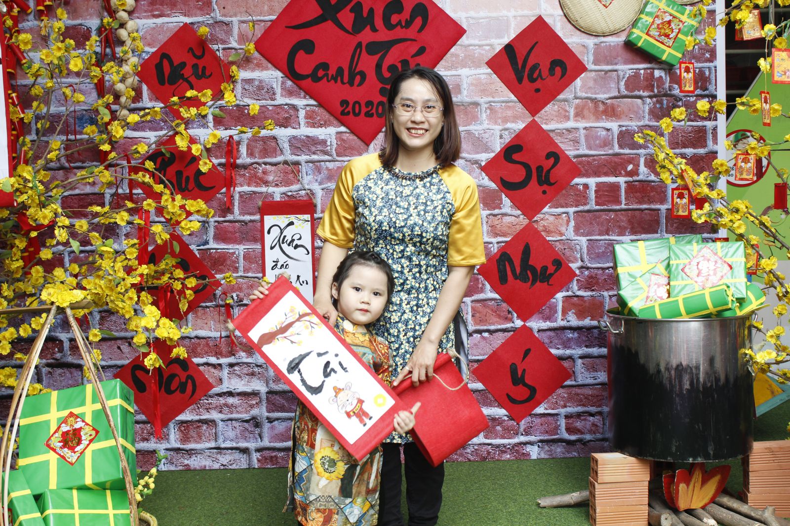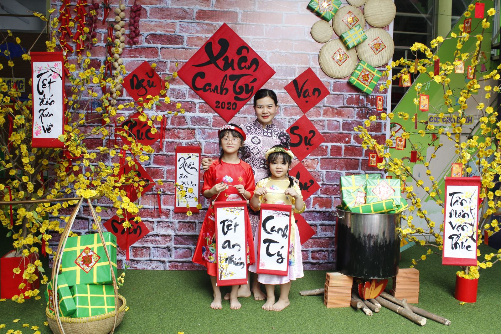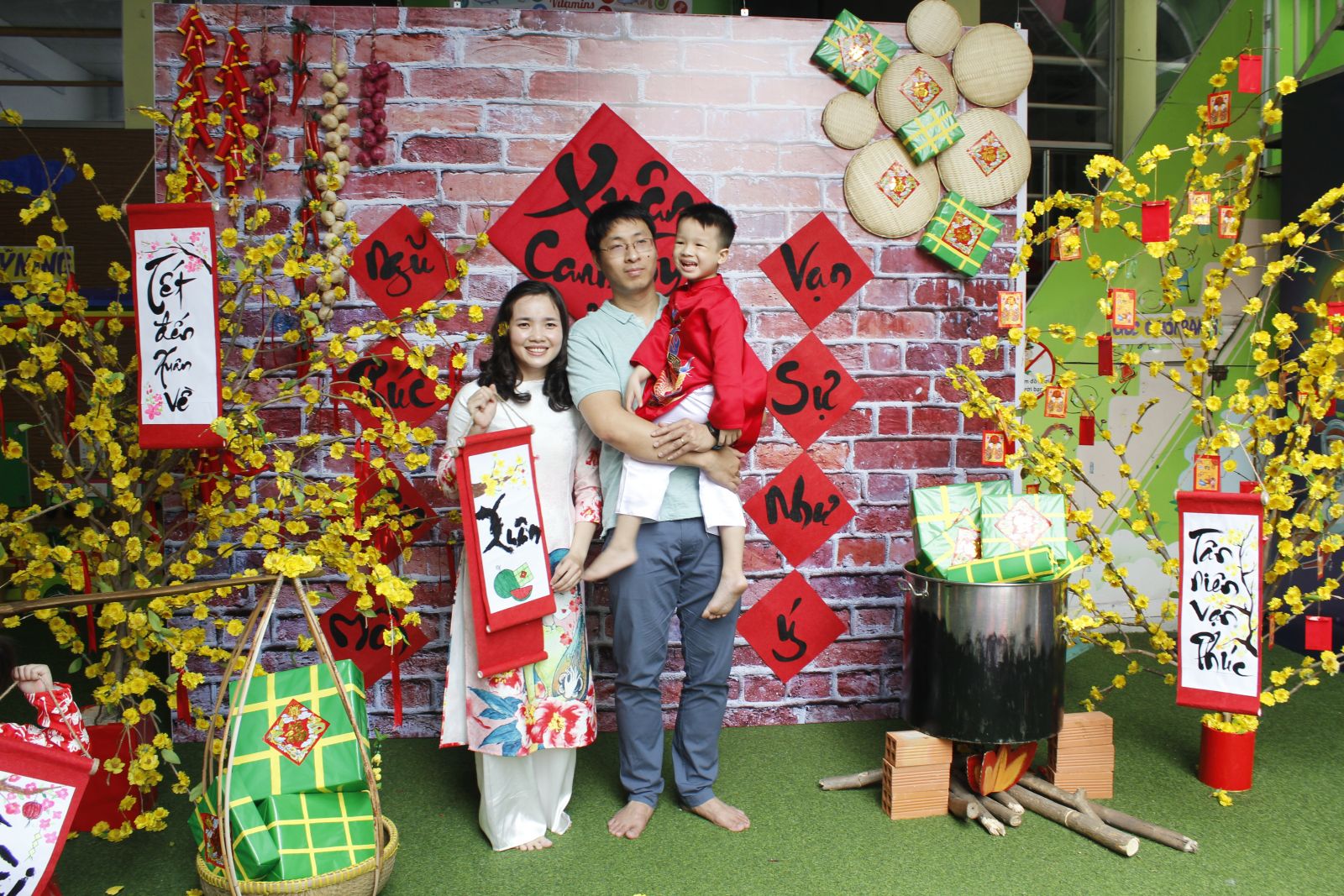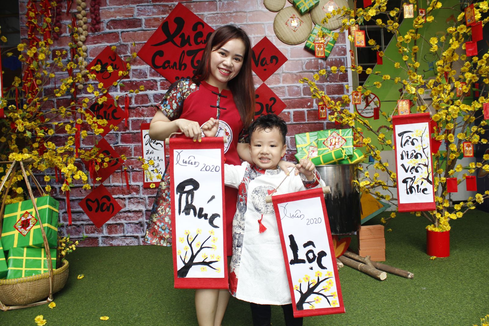 Bé và ba mẹ viết thư pháp cùng ông đồ