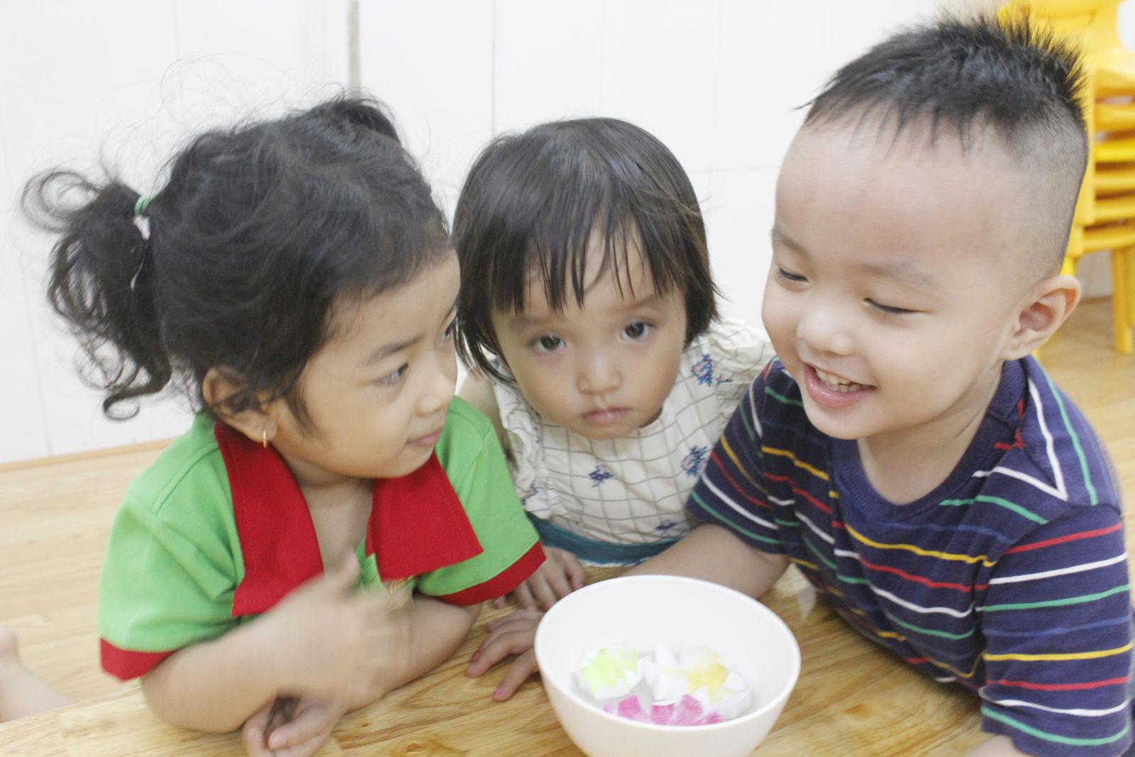 Bé vui thí nghiệm Hoa nỡ trong nước