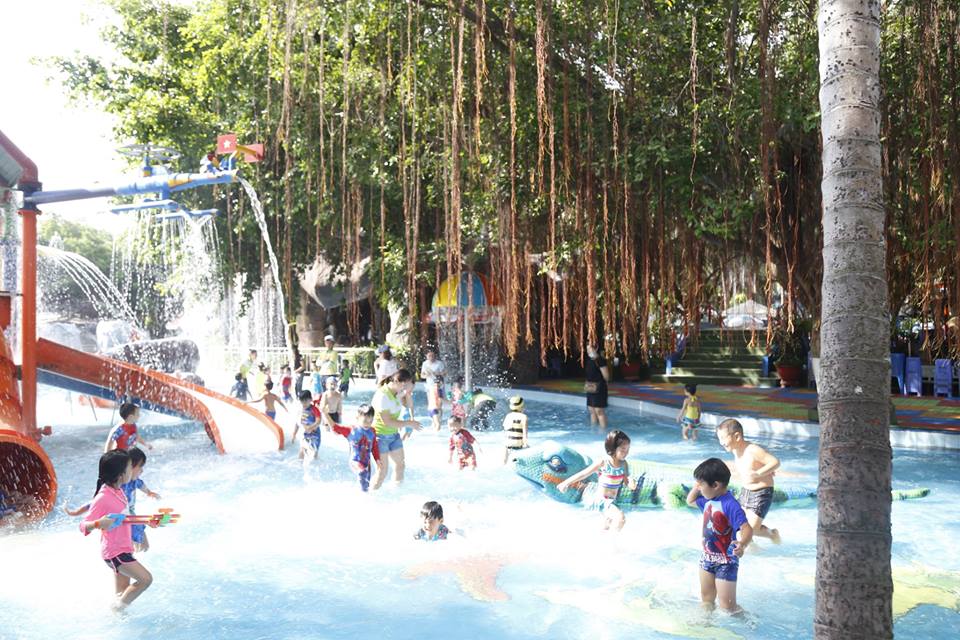 Khi vào Khu vui chơi Đàm Sen nước, bé nào cũng vui sướng và hào hứng khi được trải nghiệm hoà mình vào làn nước cùng cô và các bạn.