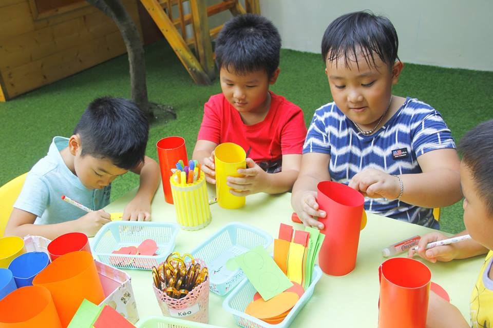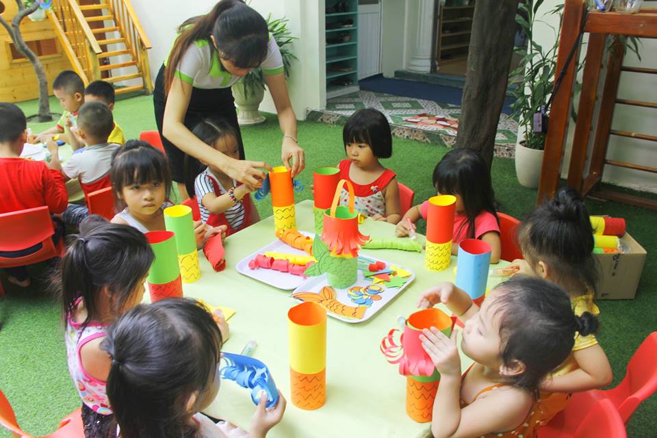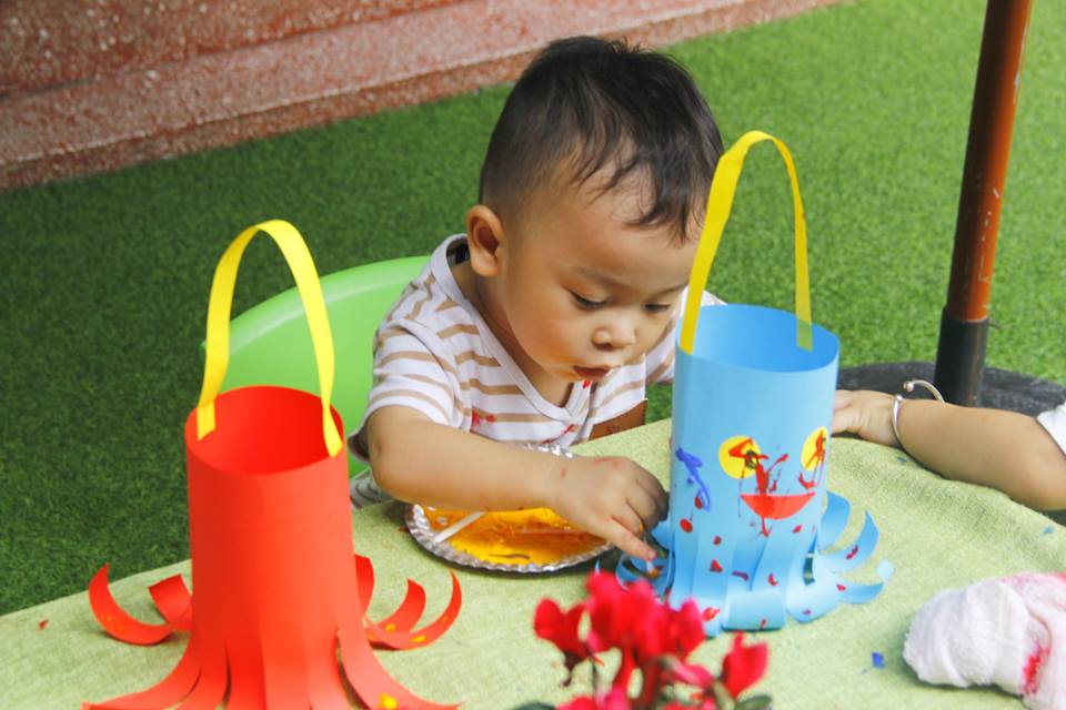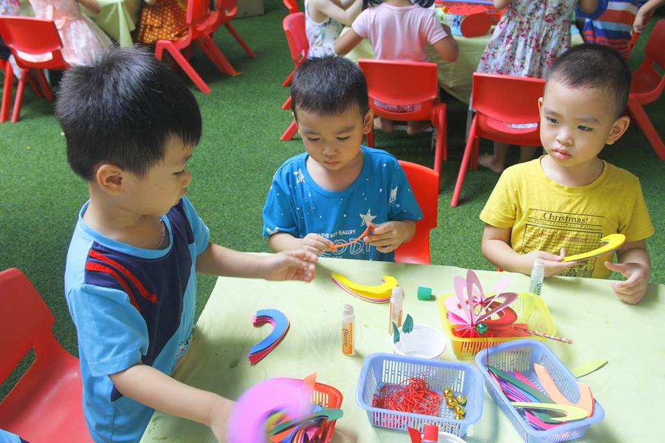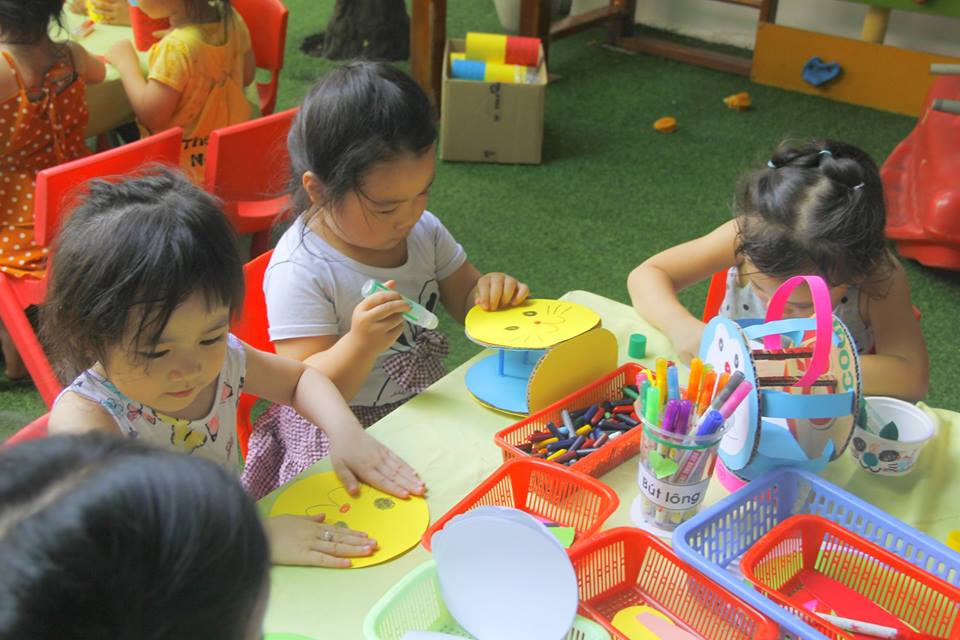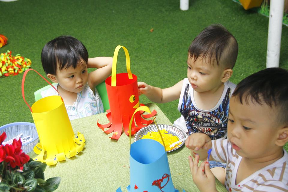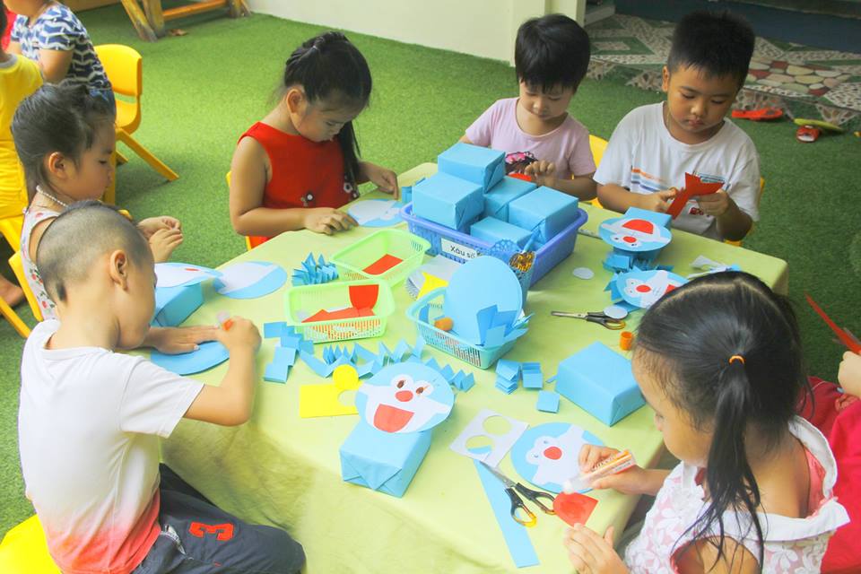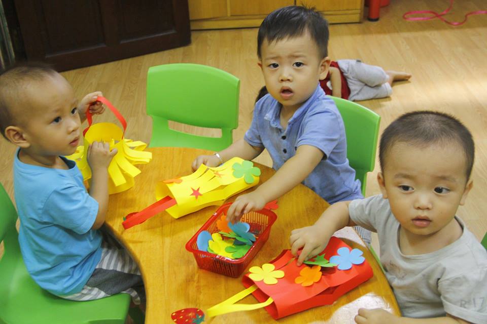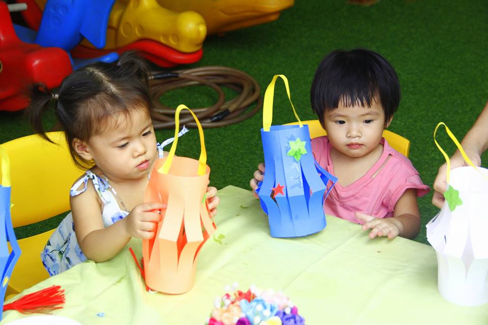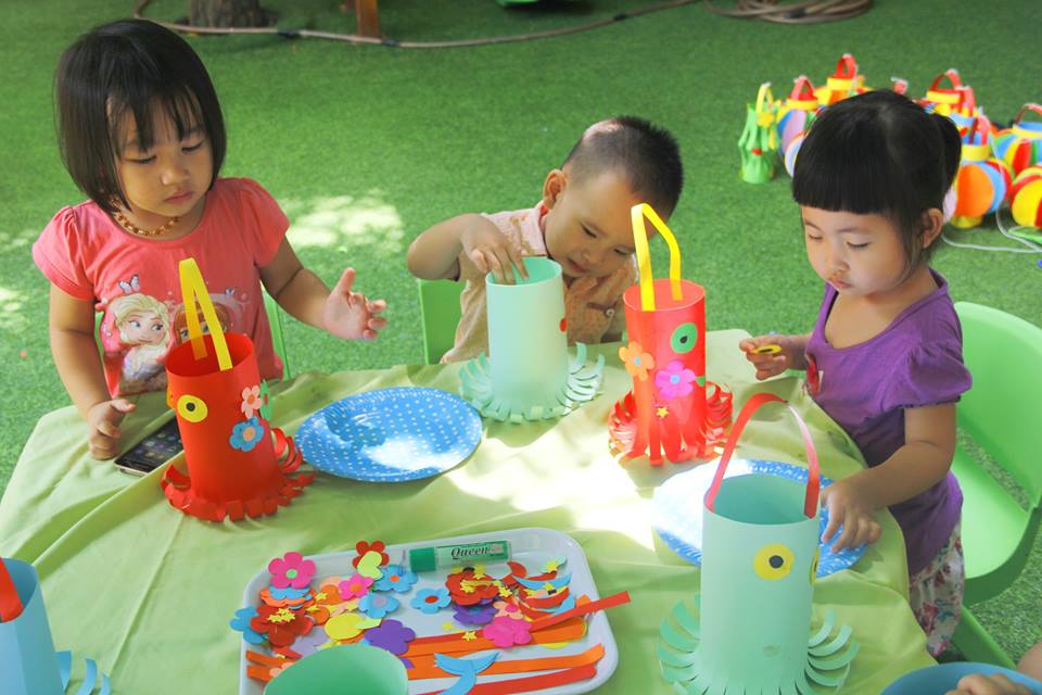 Các con vui thích àm lồng đèn chuẩn bị trung thu