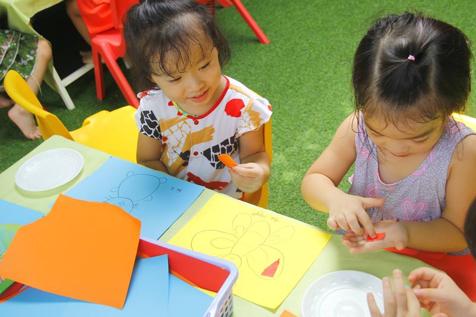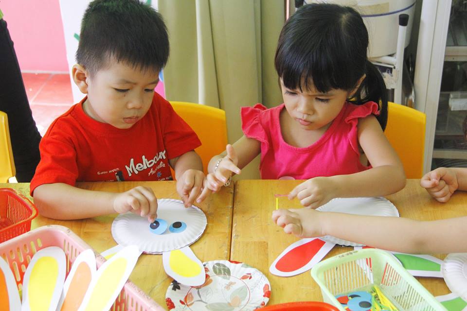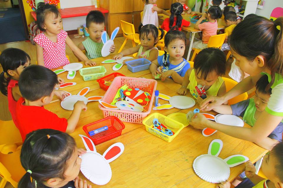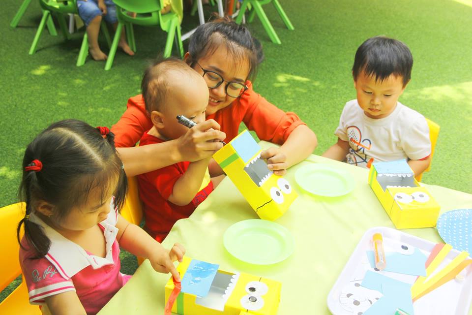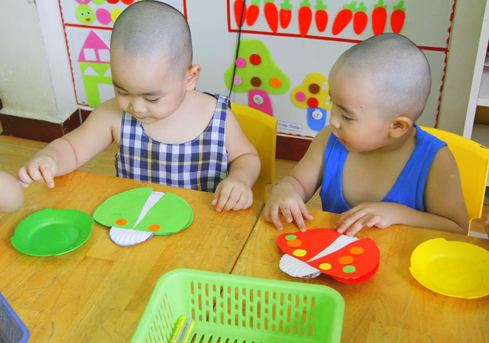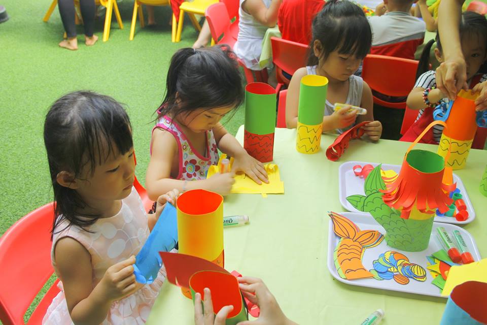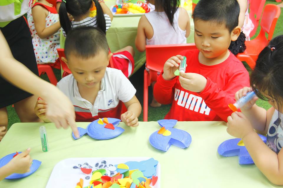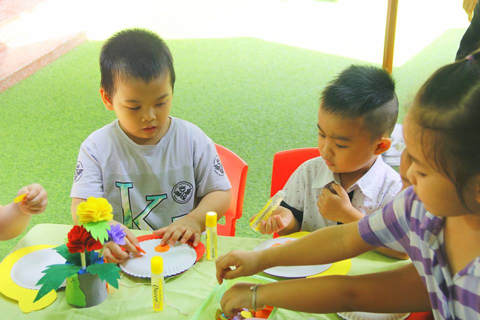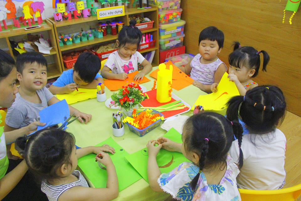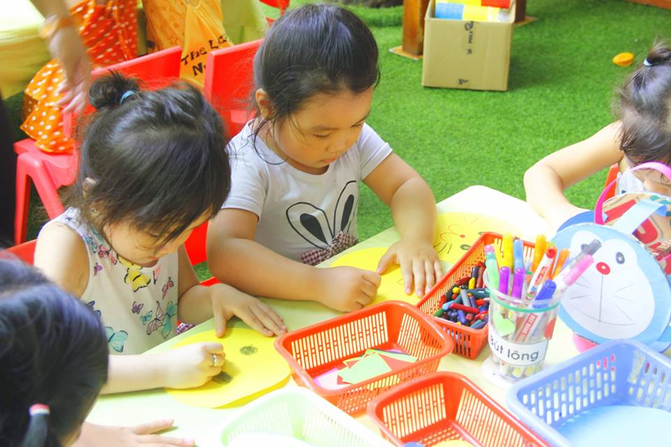 Các con vui thích àm lồng đèn chuẩn bị trung thu
