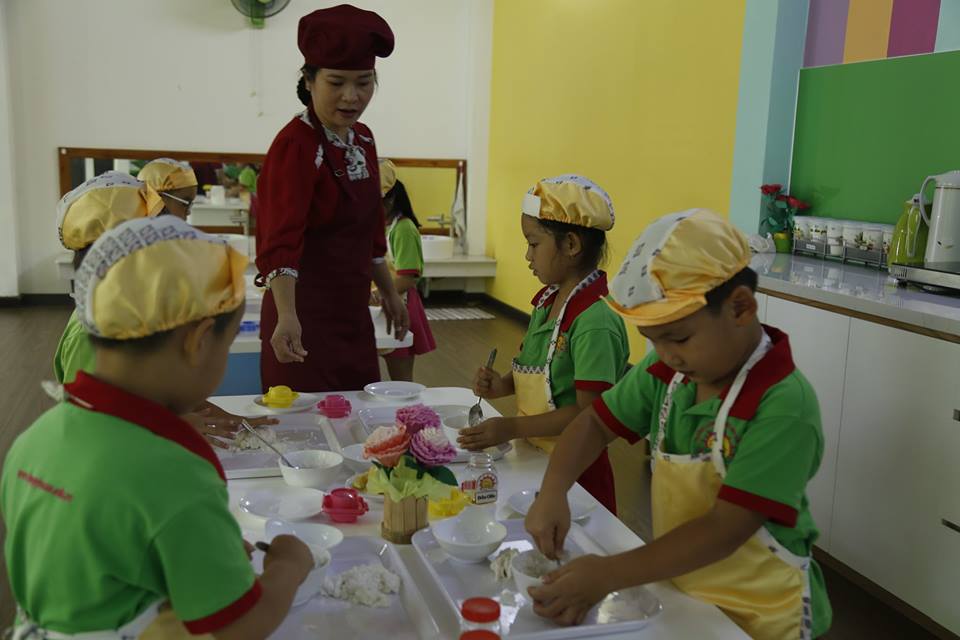 Ở phòng nội trợ, các bạn nhỏ lớp Mickey vừa được cô hướng dẫn cách làm bánh vừa được cô dạy về ngày tết trung thu. Tết trung thu là dịp để các con được chơi lồng đèn, xem múa lân, được phá cỗ với nhiều loại bánh mứt, trái cây thật ngon,…Và trong tháng 9 này, các con sẽ được trải nghiệm và vui chơi cùng ngày hội trung thu với nhiều hoạt động hấp dẫn chỉ có tại HappyHouse Kindergarten.