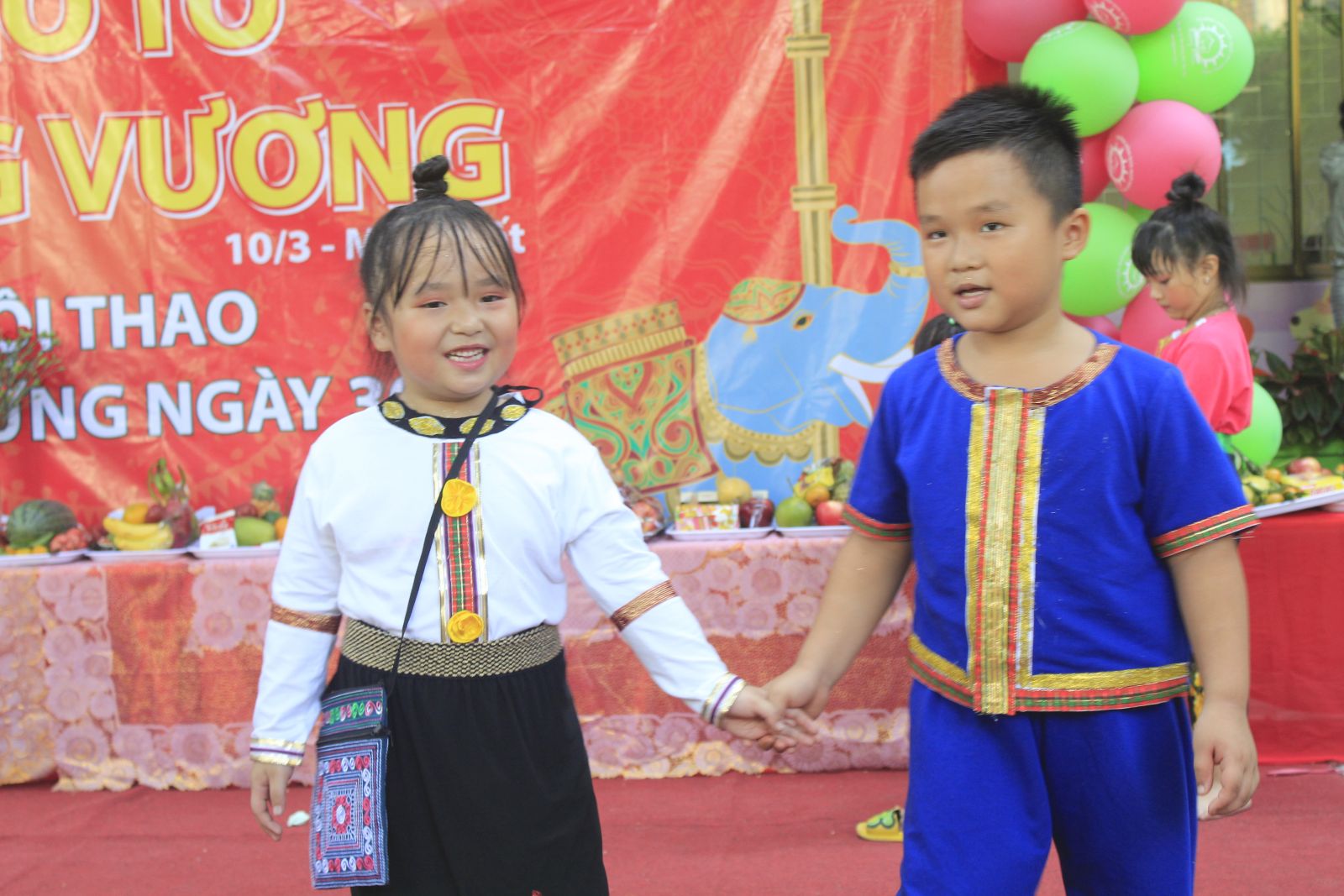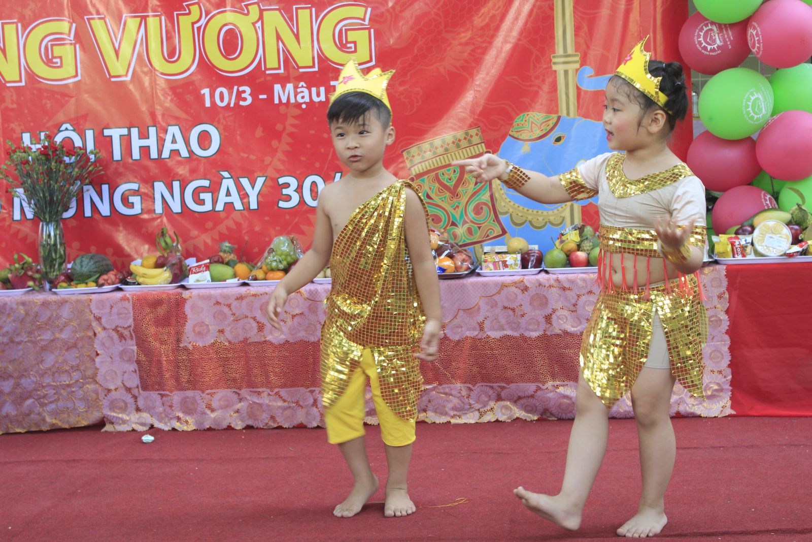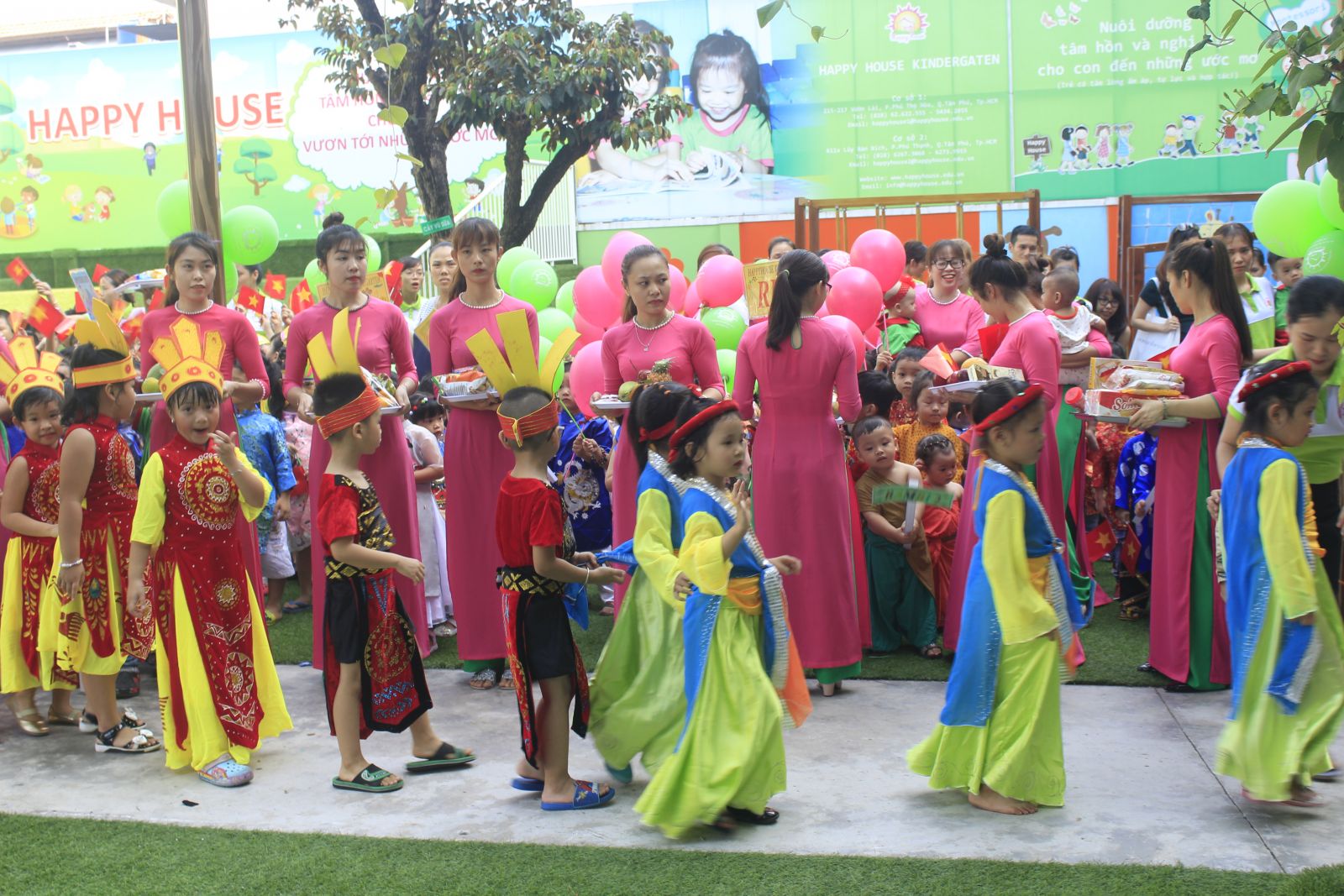 Buổi diễu hành được diễn ra sôi nổi với tập thể nhà trường và tất cả các bé trong sự trang nghiêm, hướng về đất tổ, dâng lên Quốc tổ với tất cả lòng biết ơn của mình bằng sự ngưỡng mộ và thành kính bằng việc dâng mâm ngũ quả, trình diễn những tiết mục văn nghệ do chính các bé biểu diễn bằng những trang phục tự tạo về các dân tộc.
