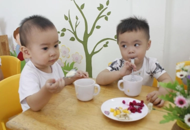 Bé xíu nhưng giỏi chưa nè Nhìn các con tự làm và thưởng thức những ly sữa chua trái cây ngọt mát, ba mẹ có thấy vui không nè? Riêng các cô thấy thương con lắm, nhìn con tự lập và khôn lớn từng ngày mà hạnh phúc làm sao. Yêu lắm các con, yêu lắm các giây phút như thế này. Vì vậy, cô trò ta hãy luôn lưu giữ những khoảnh khắc đáng yêu này con nhé.