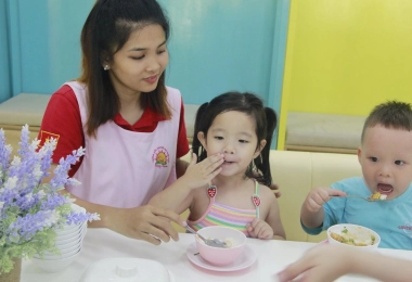 Bữa trưa sẽ ngon miệng hơn khi các cô biết và luôn chuẩn bị các món ăn theo sở thích của con. Hôm nay, nhà trường đã chế biến món cơm gà, món ăn mà các con đã rất yêu thích đấy. Món ăn không những ngon mà còn hấp dẫn về cách bày trí nữa, món nước sốt thì ôi tuyệt làm sao. Con thể hiện lòng biết ơn về tình yêu của cô bằng cách ăn hết khẩu phần của mình luôn. Cô xem con giỏi chưa nè. Lần sau cô lại chuẩn bị món này cho con ăn nữa nha.