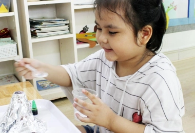 Các giờ làm thí nghiệm tại trường Happy House CS Vườn Lài luôn làm các bé thích thú, bởi giờ học luôn mang lại cho các bé nhiều tiếng cười, bé thỏa sức khám phá, sáng tạo và hình thành tốt phản xạ tư duy. Chỉ cần vài nguyên vật liệu đơn giản là đã tạo nên thí nghiệm vui và thú vị rồi nè. Ba mẹ ơi, cùng xem các nhà khoa học nhí lớp Mickey 1 thực hiện làm thí nghiệm núi lửa phun trào nhé. Thí nghiệm này cũng khá đơn giản nhưng lại rấp hấp dẫn đối với trẻ, nếu có thời gian ba mẹ hãy làm cùng con ở nhà nha.