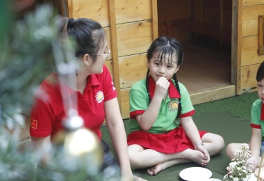 Một buổi sáng với khí trời lành lạnh, những án mây trắng trên bầu trời thật đẹp cùng những tiếng nhạc du dương của chiếc đàn guitar đã hiện ra khung cảnh vô cùng xinh đẹp ngay tại sân trường Happy House, một khung cảnh như lạc vào xứ sở thần tiên nơi có các thiên thần nhỏ đang thưởng thức bữa sáng cùng cô và các bạn. Cô trò ngồi quây quần bên nhau, vừa nghe nhạc vừa tâm sự và cùng thưởng thức bữa sáng thật nên thơ.