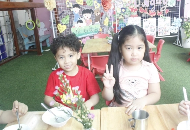 "Lớp chúng mình rất rất vui, như anh em keo sơn một nhà. Lớp chúng mình là một gia đình, một gia đình thì cùng ăn nhiệt tình" Hôm nay, các bạn lớp Asagao 2 được cùng nhau quay quần và thưởng thức bữa cơm gia đình thật ngon và ấm cúng.