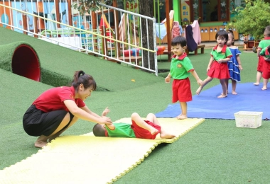 Củ khoai lăn là RCP không chỉ mô phỏng hình ảnh của khoai lăn tròn trên mặt phẳng mà còn là một tiết học thú vị để các bé được rèn luyện thể chất và kỹ năng vận động của mình. Từ hình ảnh mô phỏng của củ khoai mà các bé được quan sát, các bé sẽ tự mình biến thành củ khoai, lăn tròn trên thảm. Ngoài việc lăn trên mặt phẳng, bé còn được thử thách lăn trên mặt nghiêng để độ khó và kỹ năng của mình. Mỗi tiết học RCP trong chương trình giáo dục mầm non Nhật Bản luôn mang đến những điều mới lạ, thú vị dành cho bé, không chỉ giúp bé phát triển kỹ năng mà còn cả thể chất, tâm hồn của mình, giúp con phát triển toàn diện hơn.