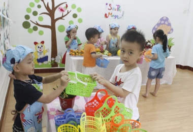 “Các bạn ơi! Tại lớp Rio 1 có siêu thị mới mở, lớp Rio 1 mời các bạn đến tham quan và mua sắm ạ! siêu thị của mình có rất nhiều loại trái cây, vừa thơm vừa tươi ngon, các bạn nhân viên lại vô cùng chuyên nghiệp & chu đáo nữa”.