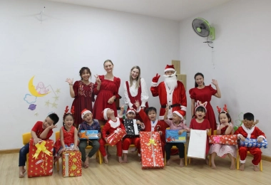 Bé nhận quà Giáng sinh tại trường Mầm non - CS Hòa Bình