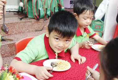 Buổi tất niên của các bé Happy House Vườn Lài thật ấm áp và vui nhộn bởi những món ăn ngon miệng, những chiếc bánh chưng - bánh tét do chính tay các bé gói cùng cô để chuẩn bị cho buổi tiệc hôm nay. Tiệc buffet cuối năm, nhìn đơn giản nhưng lại thật vui, thật hạnh phúc các bé yêu nhỉ.