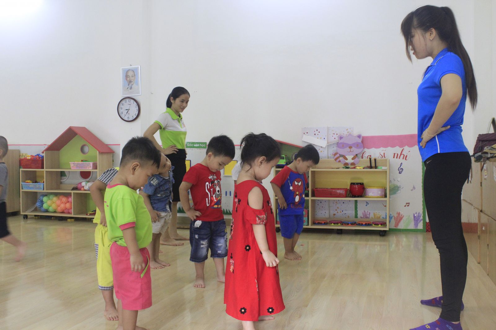 Sau buổi trải nghiệm với "chiếc thoại có dây", các con lại tiếp tục với giờ học Aerobic thật sôi nổi