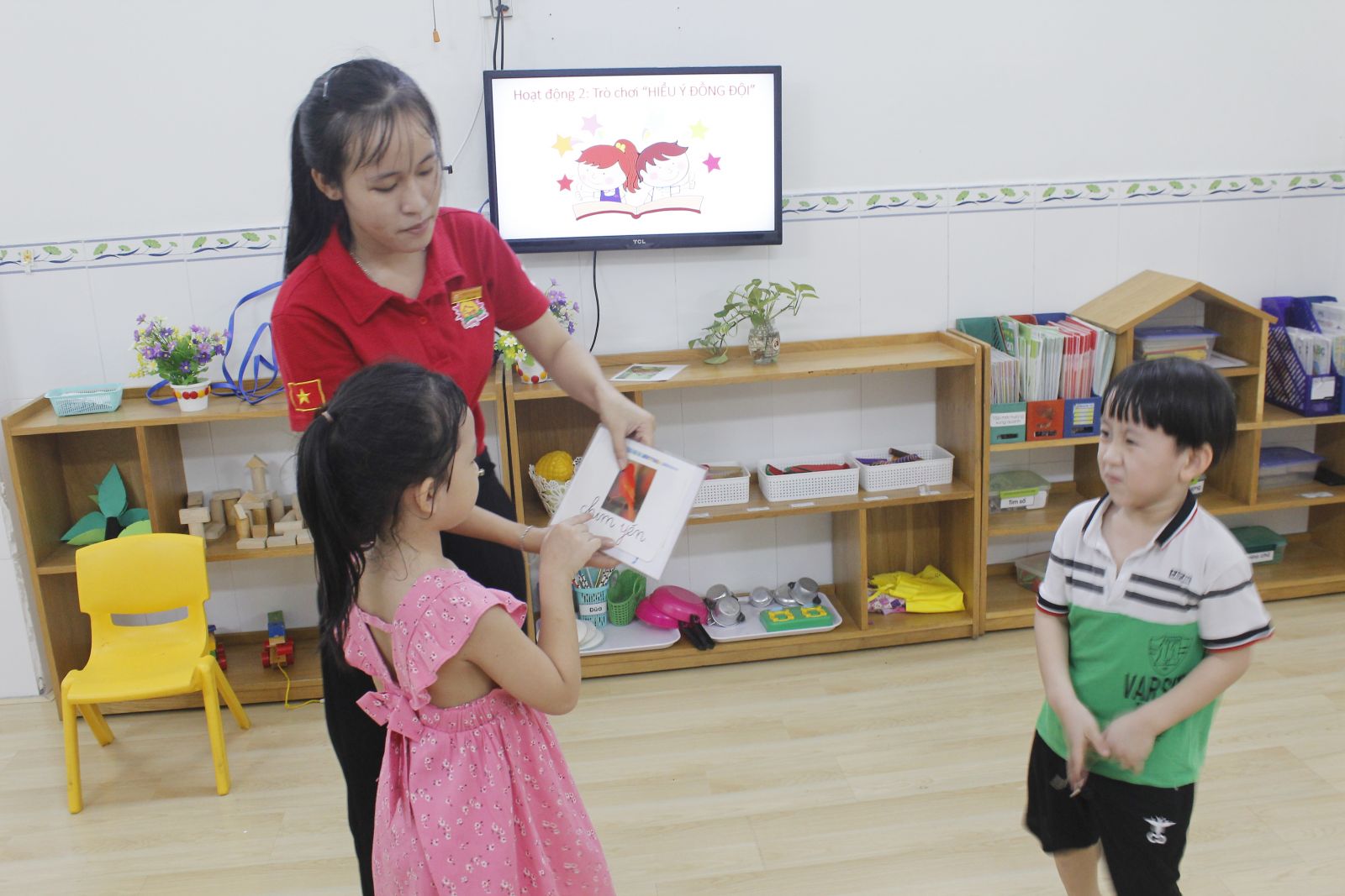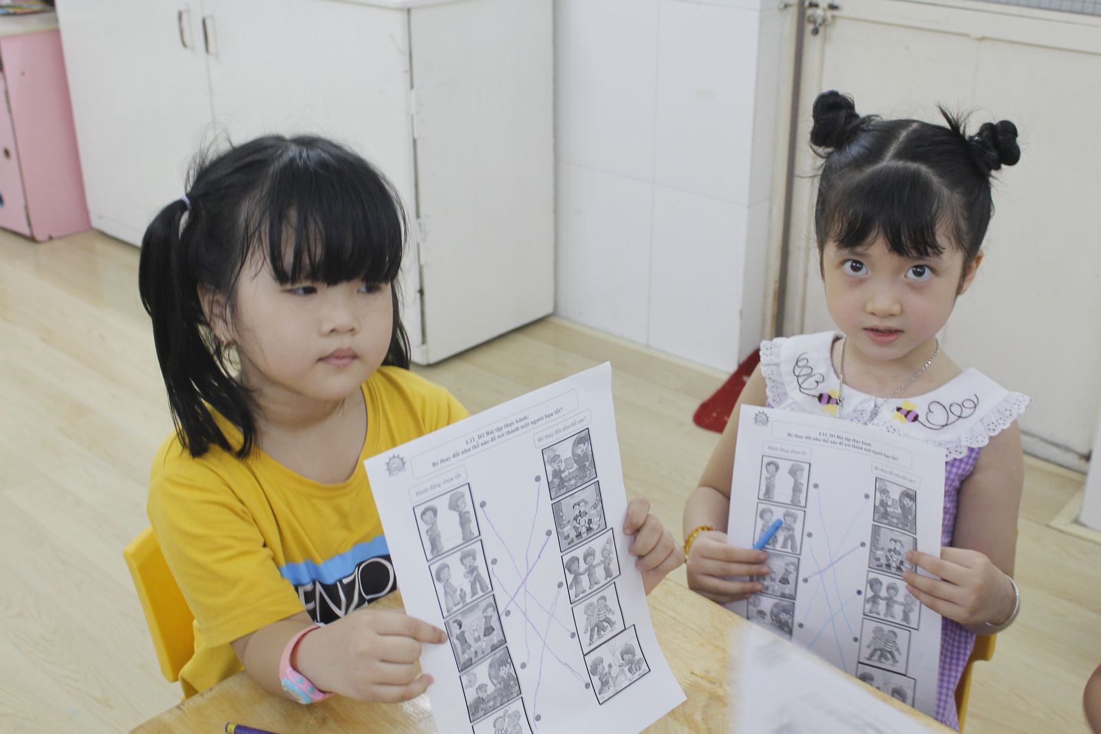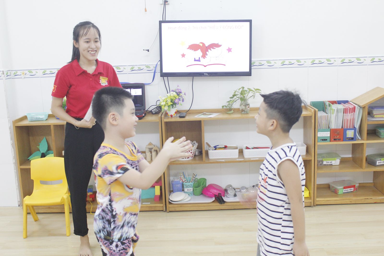 Thông qua các hoạt động trò chơi và bắt đầu từ việc hợp tác trong các nhóm nhỏ chỉ 2 đến 3 bạn trong một nhóm, các bạn cảm thấy khi chơi với bạn có rất nhiều điều thú vị và không còn tranh cãi với nhau nhiều như trước nữa!