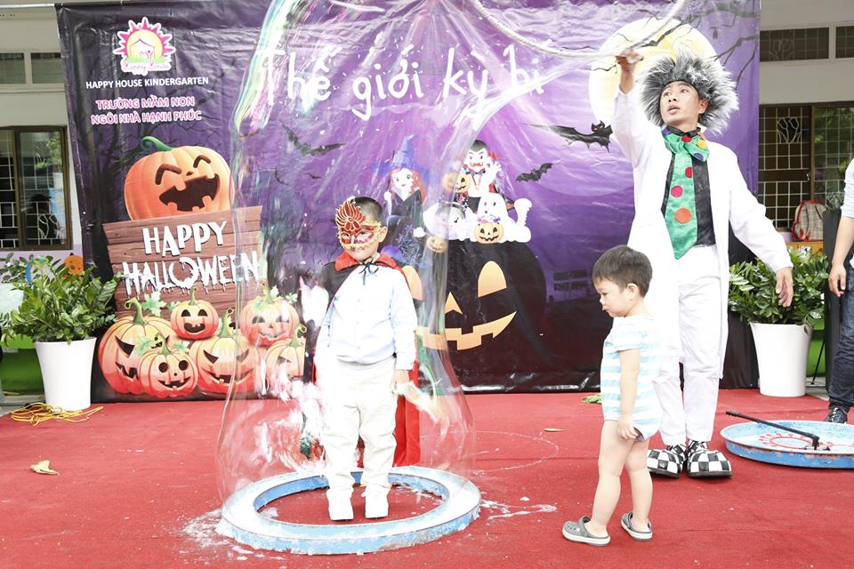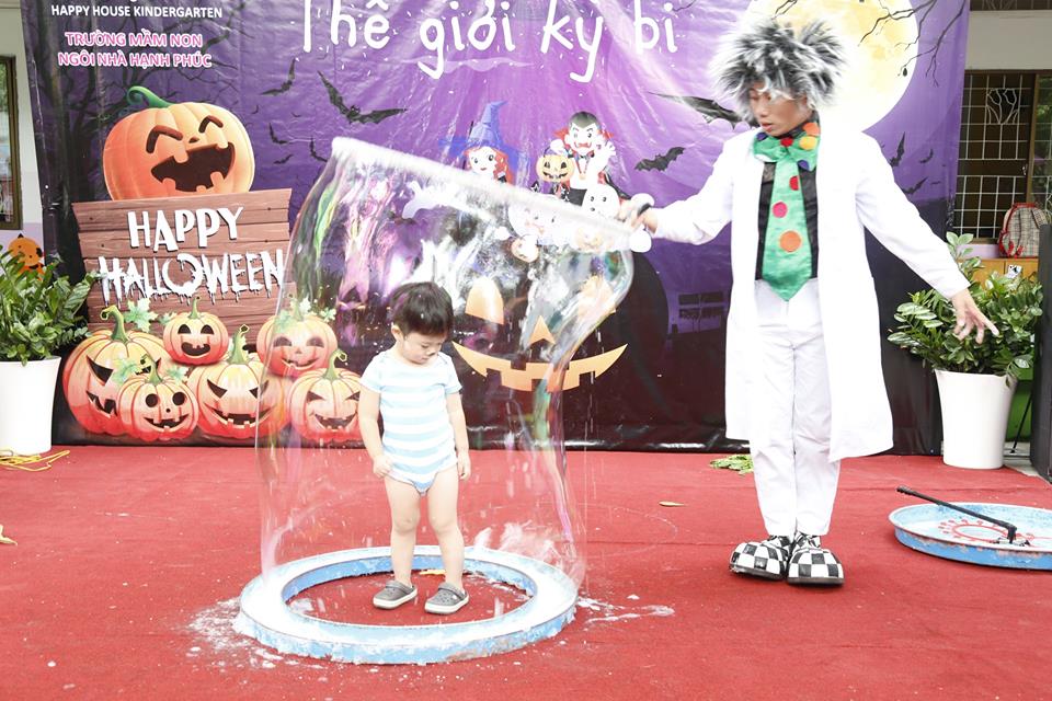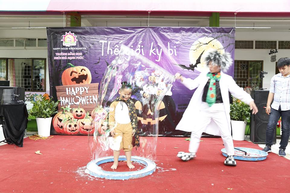 Chương trình năm nay có phần hấp dẫn & vui tươi hơn vì các bé được chào đón vị khách mời đặc biệt trong lễ hội Halloween của Trường mầm non Happy House - Ngôi Nhà Hạnh Phúc đó là hoàng tử và công chúa đến từ “thế giới Halloween kỳ bí” và chú hề với màn ảo thuật bong bóng xà phòng thật hấp dẫn mang lại nhiều điều thú vị cho các bé.