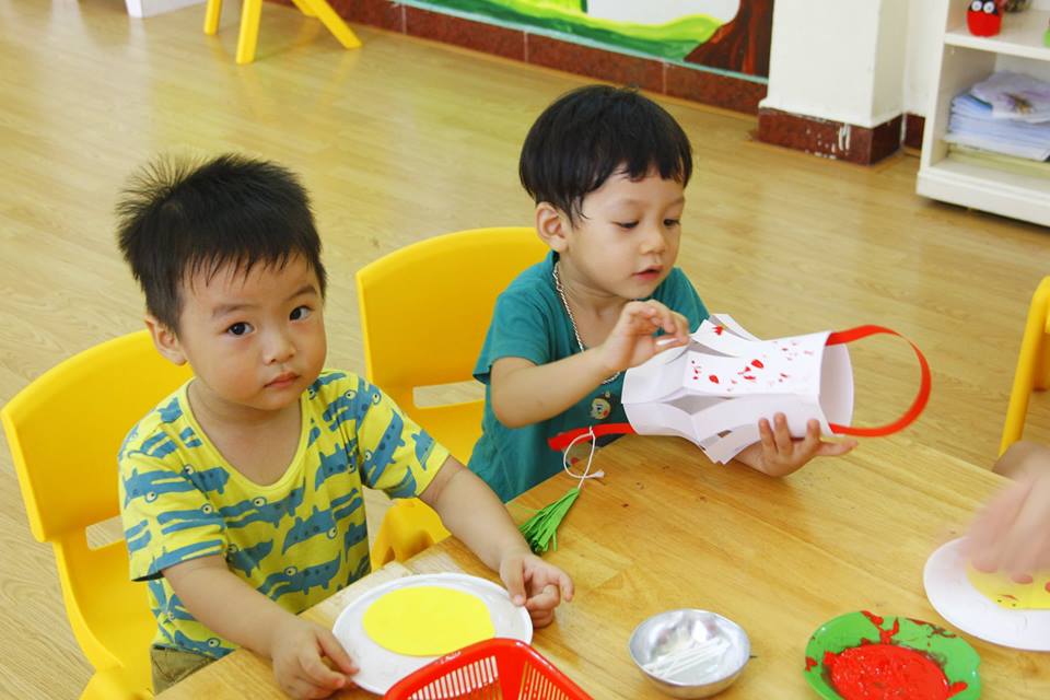 Xem bé yêu bắt tay những hoạt động rất thú vị do các cô chuẩn bị cho mình nha. Các bé được tự tay mình tạo ra những chiếc lồng đèn thật đẹp và ngộ nghĩnh. Các em Nhà trẻ và Mầm thì thực hiện phần vẽ, chấm màu và dán trang trí cho chiếc lồng đèn của mình đẹp hơn. Còn các anh chị lớp Chồi, Lá thì thực hiện những đường vẽ, cắt, gấp giấy đòi hỏi sự khéo léo rất cao. Đây là một hoạt động giúp các bé thể hiện được năng khiếu của mình, sự khéo léo và rèn các kỹ năng tạo hình cần thiết cho các bé.