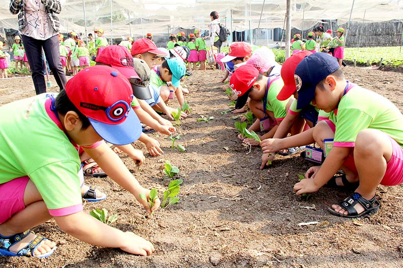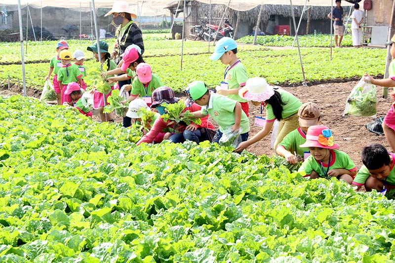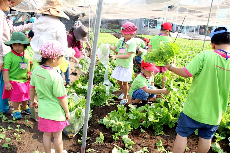 cac be truong mam non tham quan vuon rau sạch
