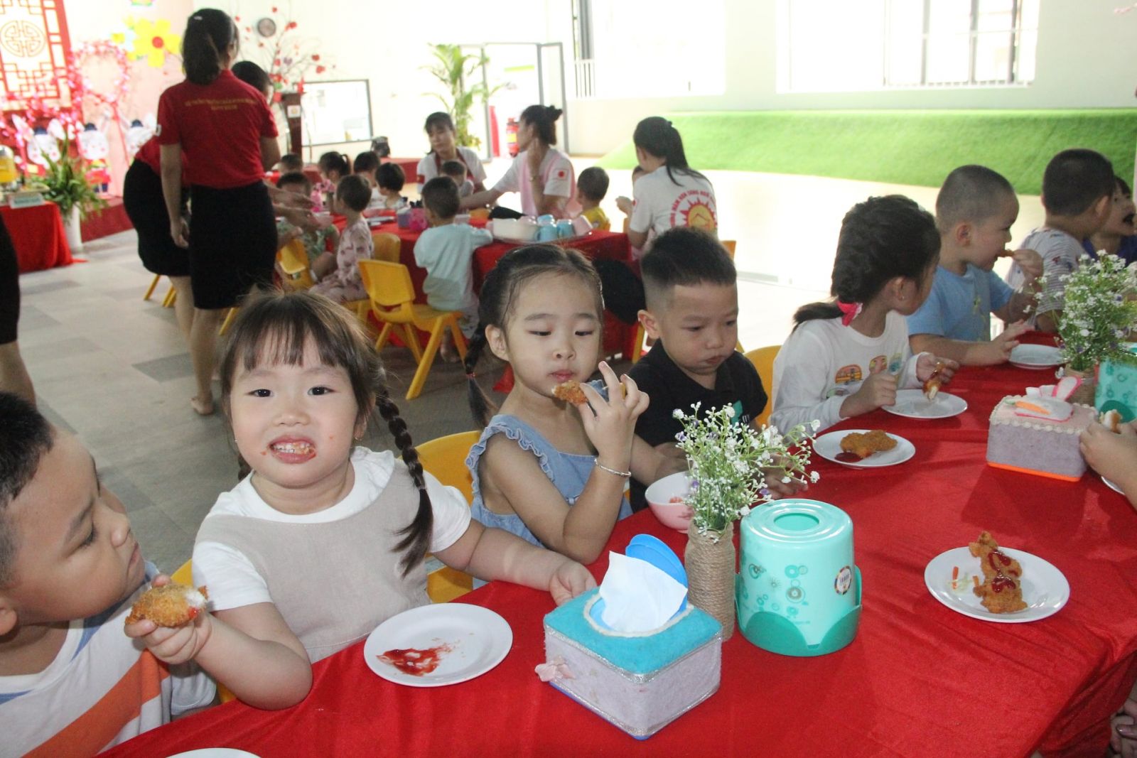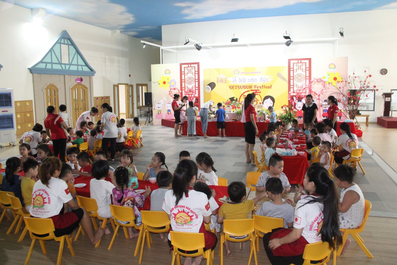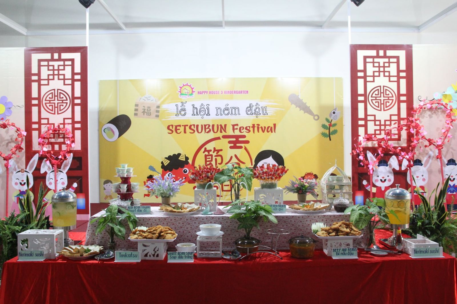 Trong chuỗi các hoạt động của “Lễ hội Setsubun – Lễ hội ném đậu”,trải nghiệm tiệc buffet là một trong những hoạt động được các bé mong chờ nhất. Đến với bữa tiệc, các bé của HappyHouse 3 đã trải nghiệm nét văn hóa ẩm thực hết sức đặc trưng của Nhật Bản. Các con được thưởng thức những món ăn đặc trưng của xứ sở Hoa Anh Đào như: Tonkatsu, Yaourt đậu đỏ, Soup miso… nhưng món ăn mang đến sự thích thú nhất cho các con là những cuộn Norimaki sushi may mắn – đây là món ăn không thể thiếu trong “Lễ hội Setsubun”, bảy vị trong cuộn sushi đều tượng trưng cho sự hạnh phúc, sức khỏe và sự thịnh vượng. Thông qua những hoạt động trong Lễ hội,các cô luôn mong những điều may mắn và hạnh phúc nhất sẽ luôn đến với các con và đại gia đình Happyhouse.