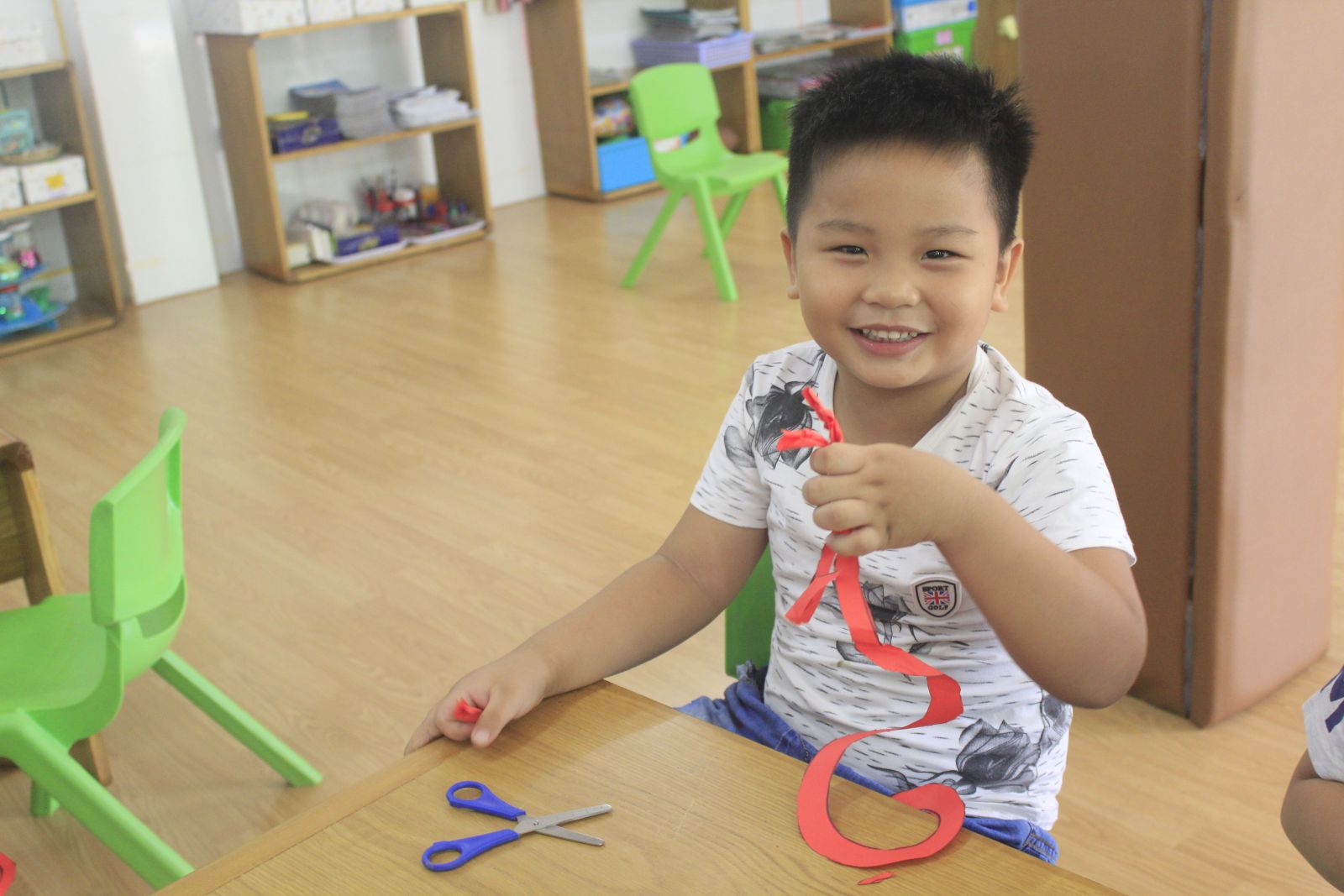 Với vận động “cắt xoắn ốc trên giấy” đòi hỏi các ngón tay của con phối hợp nhịp nhàng, cầm kéo cũng đòi hỏi phải có kỹ năng để con không cắt phạm vào tay.