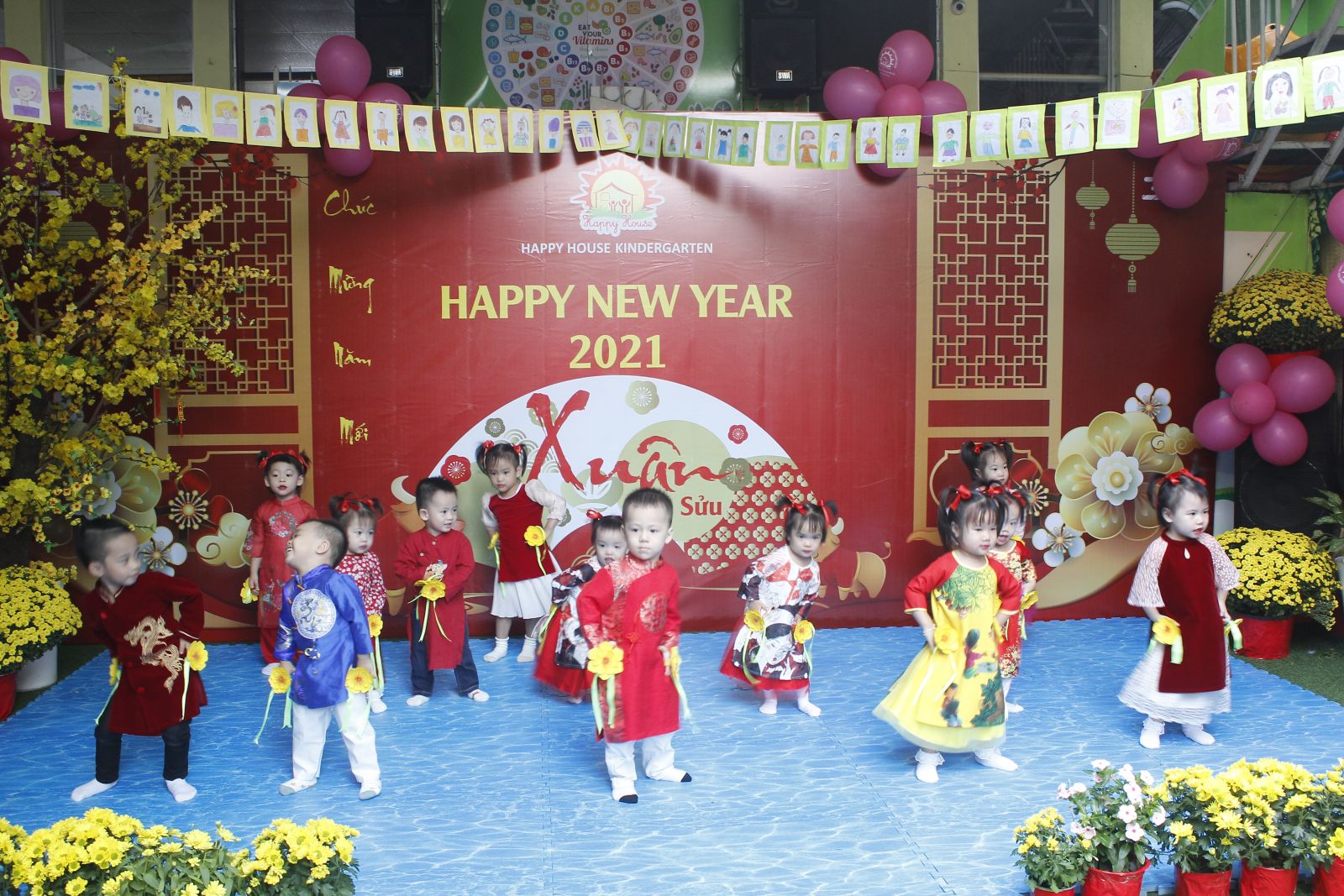 Một mùa xuân ấm áp và rộn ràng lại đến với trường MN Happy House CS Vườn Lài, các bé đã vẽ lên một khung cảnh tuyệt đẹp trong mắt của chúng ta bằng các tiết mục đặc sắc như: tết đong đầy, hoa cỏ mùa xuân, bé đón tết sang, bánh chưng xanh,... Sự tự tin của các bé khi thể hiện từng bài hát, điệu múa làm không khí trở nên sôi động và ấn tượng đã tạo nên một bức tranh đáng nhớ cho những ai tham gia.